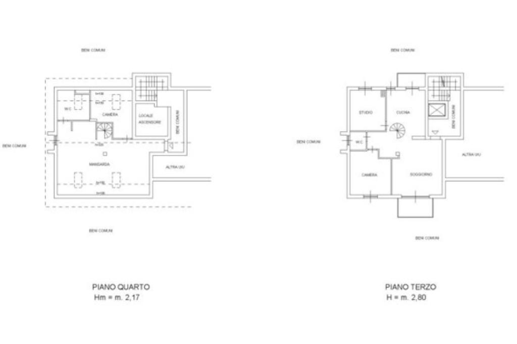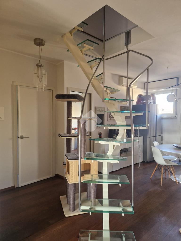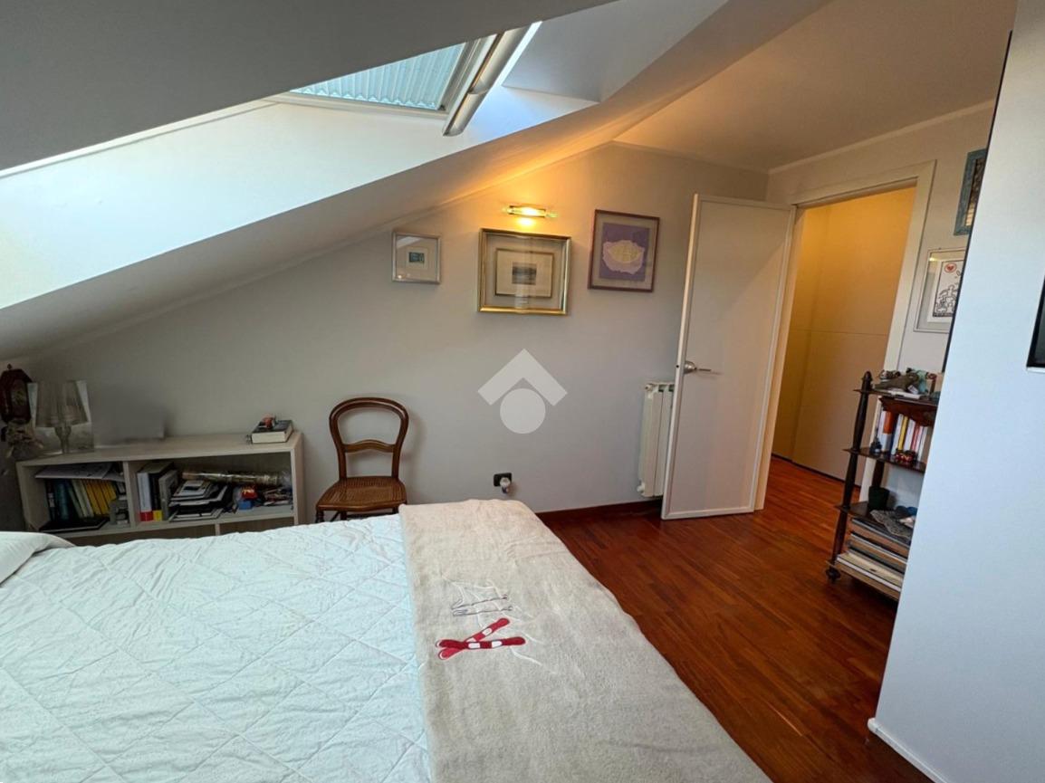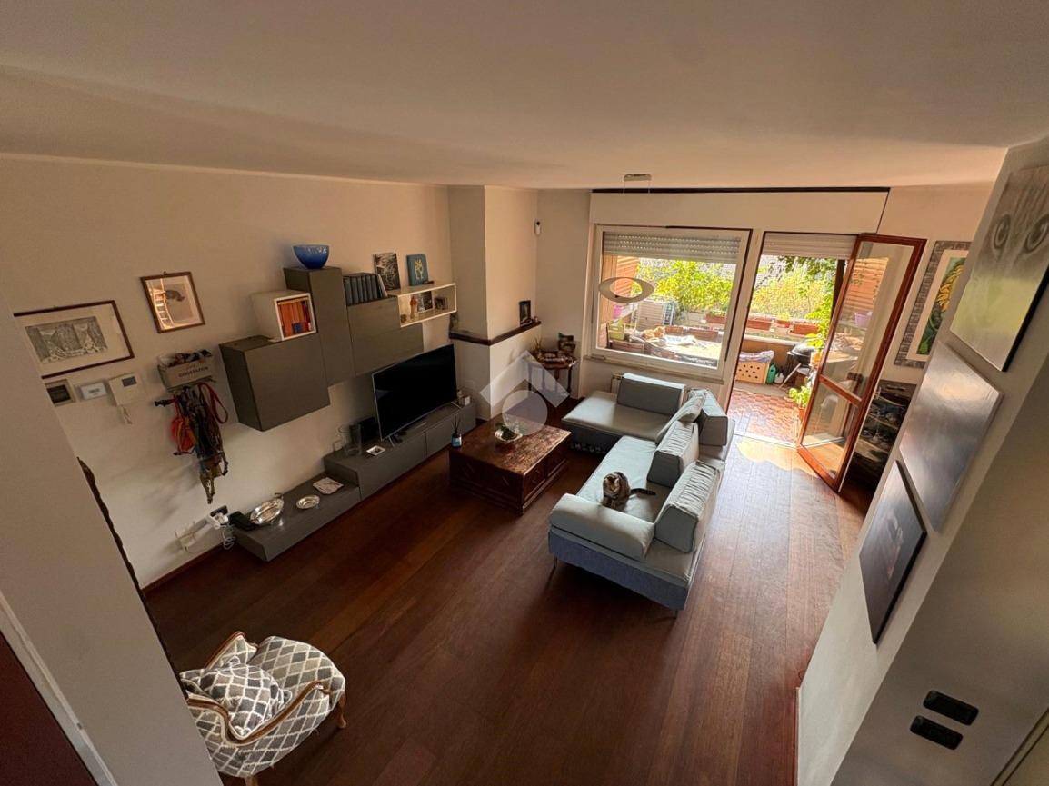 L'immobile si sviluppa su una superficie di 158 mq, distribuiti tra il terzo e il quarto piano di una palazzina degli anni '80 servita da ascensore. Il contesto condominiale in cui si trova è curato, con ampie zone verdi.
