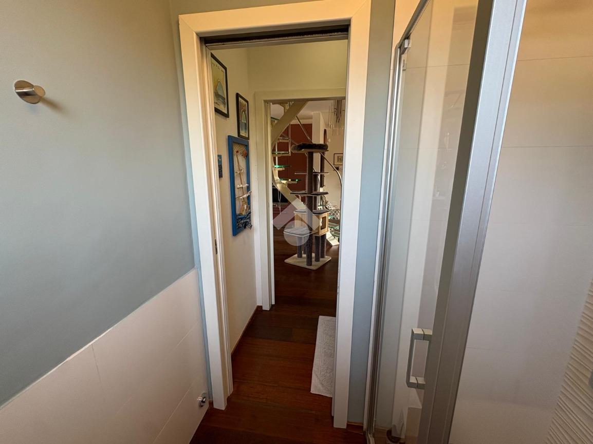 Al terzo piano si accede alla zona giorno, dove troviamo un ampio soggiorno luminoso, arricchito da grandi vetrate che danno accesso ad un terrazzo abitabile. Questo spazio esterno è ideale per godersi momenti di relax all'aria aperta. Sempre su questo livello si trovano una spaziosa cucina con balcone di servizio, una camera, un bagno finestrato con doccia e antibagno.